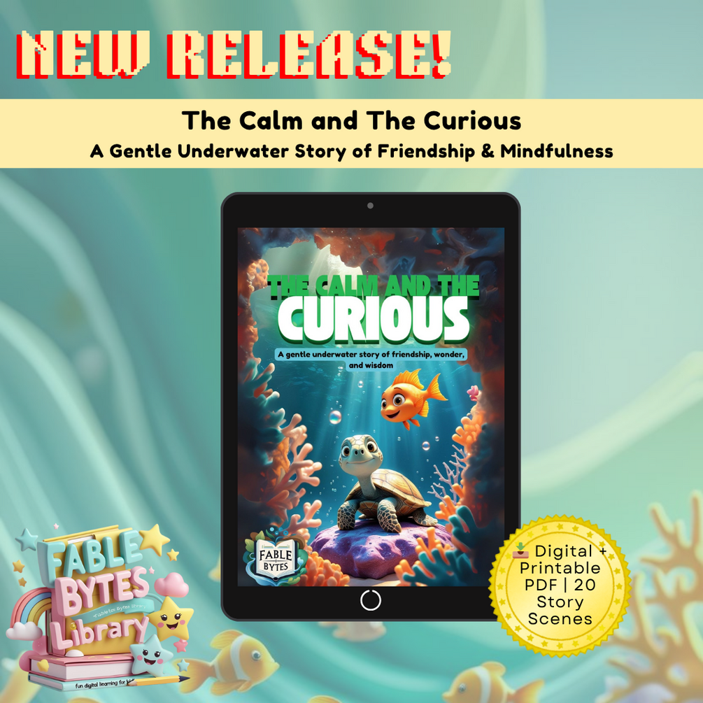 The Calm and the Curious is a charming 20-page storybook that follows an unlikely underwater friendship between a wise turtle and a curious little fish. A perfect mix of fun and mindfulness for young readers.